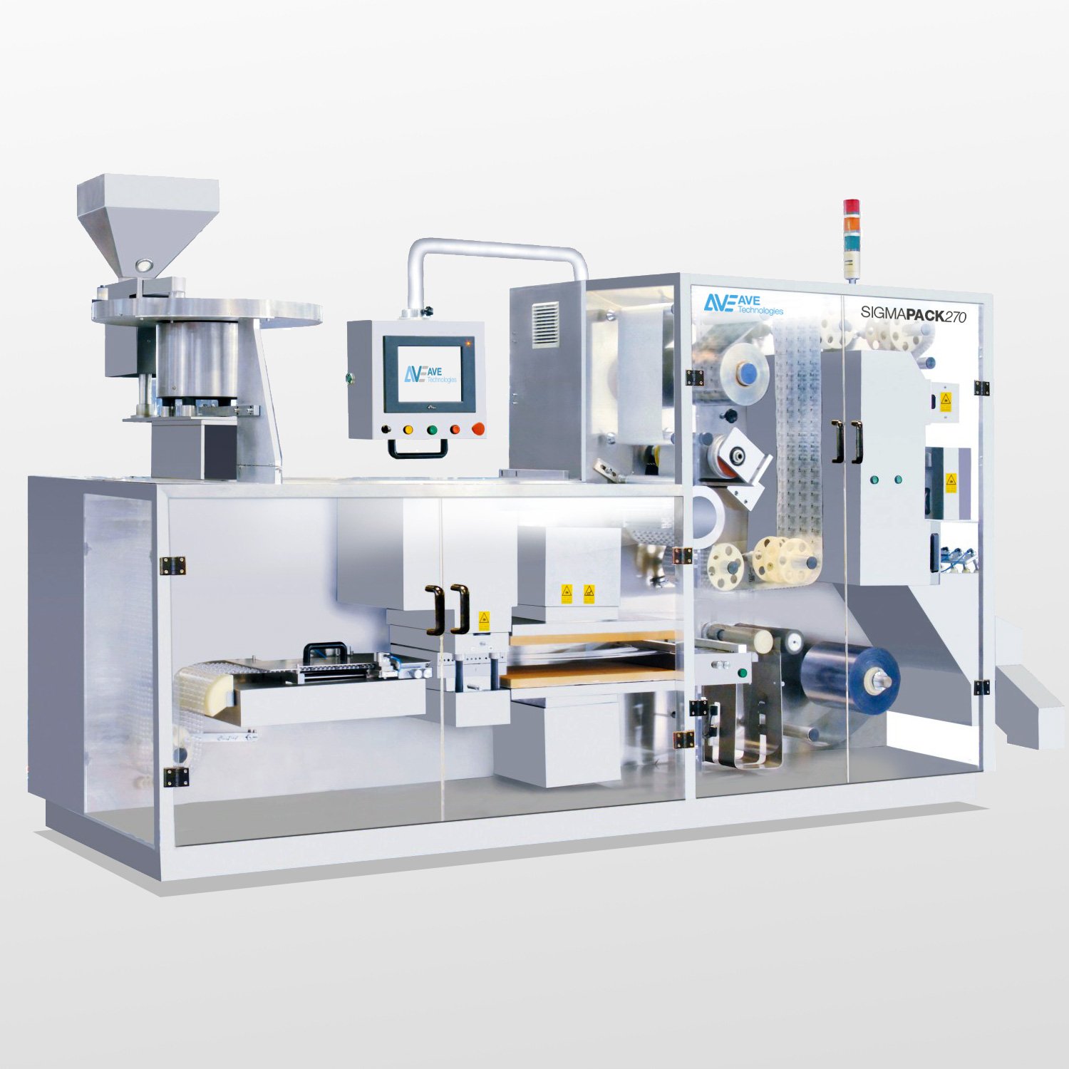 It is economical with materials, ensuring no cross-edge scrap. The push-stepping mechanism allows smooth blisters and easy operator adjustment. Reliable in operation and its fully enclosed structure is easily opened for operator access.