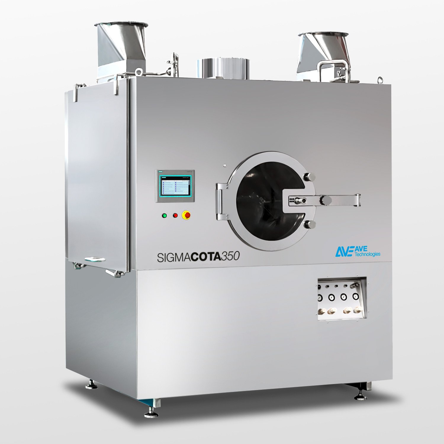 AVE offer a complete range of fully automated Tablet Coating Systems including perforated, side-vented, and non-perforated drums up to 750kg capacity.